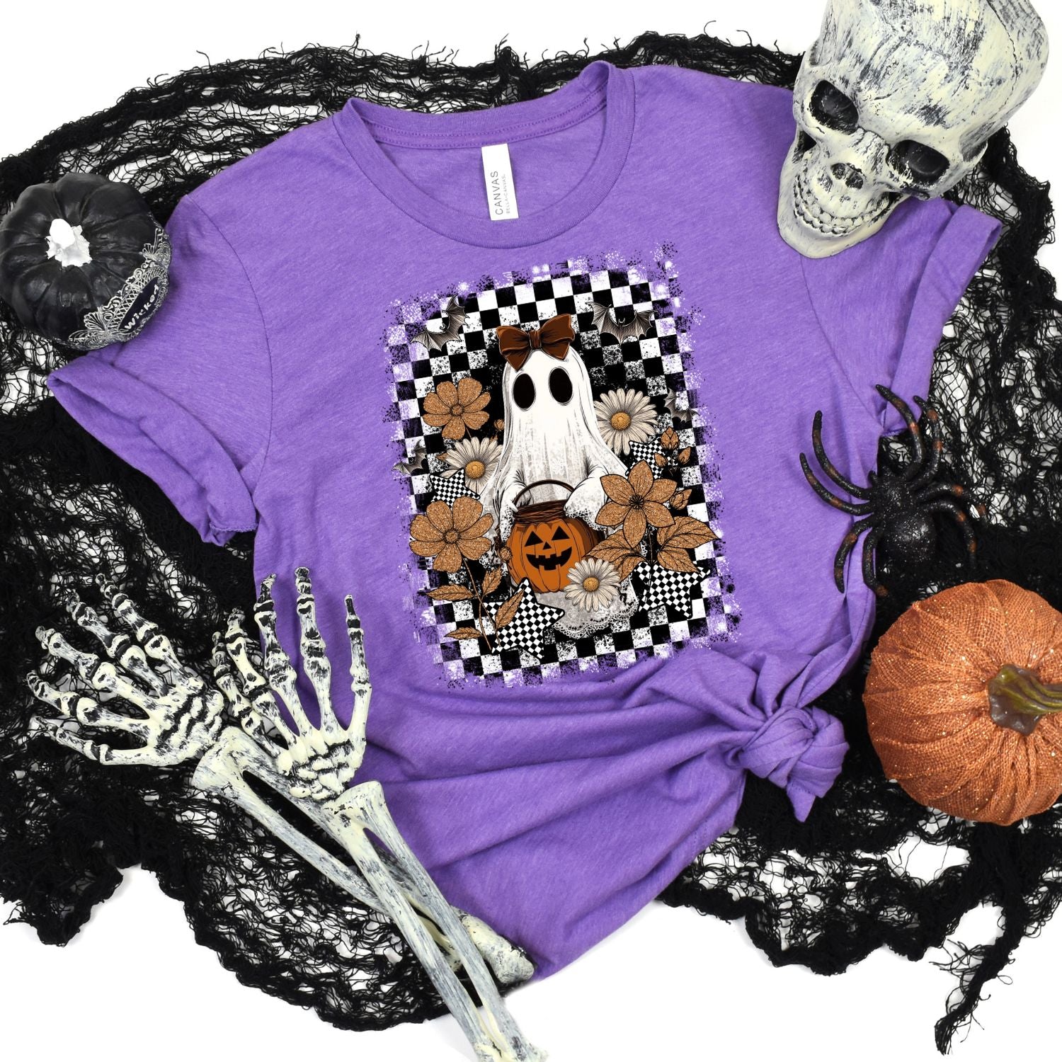 CHECKERED GHOST WITH PUMPKINS