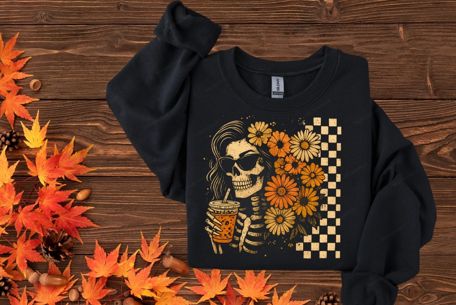CHECKERED BOUJEE SKELTON WITH ICED DRINK